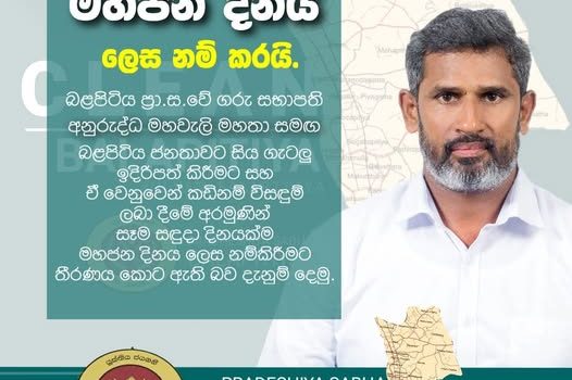 ශීඝ්රයෙන් සංවර්ධනය වන බලපිටිය සභා බල ප්රදේශය තුළ පොදු පහසුකම් වැඩිදියුණු කිරීම සහ ජීවන තත්ත්වය ඉහළ නැංවීම මගේ මූලික අරමුණයි. මෙම අභිලාෂයන් සාක්ෂාත් කර ගැනීම සඳහා, මහජන යහපත සඳහා කැපවී සිටින ප්රාදේශීය සභා මන්ත්රීවරයෙකු ලෙස අවශ්ය සෑම පියවරක්ම ගැනීමට මම කැපවී සිටිමි. බලපිටිය ප්රාදේශීය සභාවේ නායකයා ලෙස මම ඔබගේ අවශ්යතා සපුරාලීමට සහ විද්යුත් තාක්ෂණය පදනම් කරගත් සේවාවන්හි ප්රගතිය වෙනුවෙන් පෙනී සිටීමට දැඩි ලෙස ආයෝජනය කරමි. එක්ව, අපගේ ප්රජාවේ විකාශනය වන ඉල්ලීම් වඩා හොඳින් සපුරාලීම සඳහා අපි ඉලෙක්ට්රොනික සේවා විෂය පථය පුළුල් කර ප්රශස්ත කරන්නෙමු.