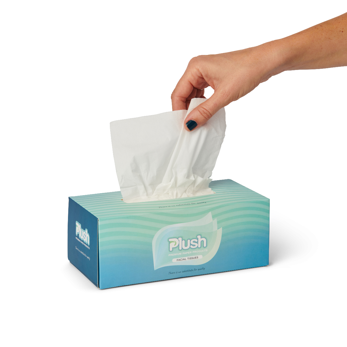 - Our Plush Facial Tissues are 2ply and come in a large box of 200, making these an ideal option for high traffic areas such as the workplace or in a clinical setting.